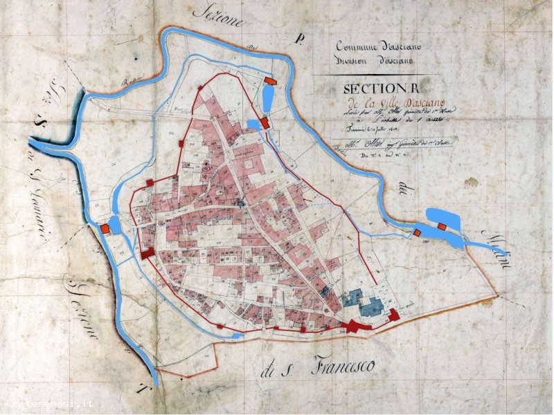 1813 - La rete idrica dei mulini intorno al centro storico Asciano