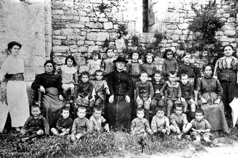 1910-1920 - I bambini dell'asilo parrocchiale dietro la Pieve di San Vittore Rapolano Terme