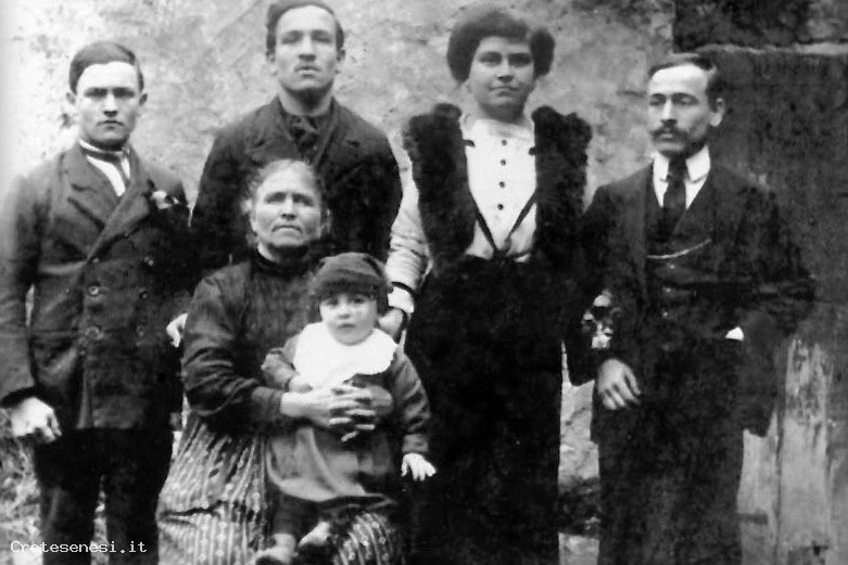 La famiglia qui ritratta è quella di Gabriello Francini, nato nel 1855 e morto nel 1913. La foto è stata scattata nel 1915 e ritrae la moglie i figli ed un nipote di Gabriello.