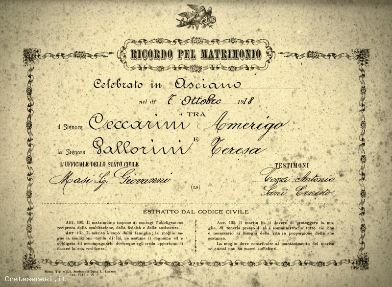 1918, Lunedì 7 Ottobre - Ricordo di Matrimonio Asciano