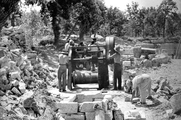 Per lo scorrimento dei fili sul banco di travertino, erano necessari apparati dotati di rocchetti di avvolgimento e svolgimento del cavo.