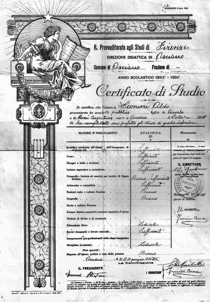 1936 - Quando in Terza Elementare si faceva l'esame per il primo diploma Asciano