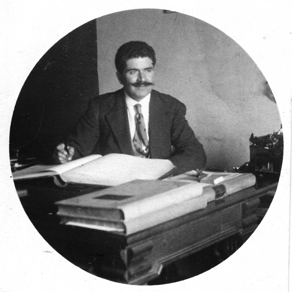 Guglielmo Francini Naldi, fotografato al suo tavolo di lavoro presso il locale Consorzio Agrario.