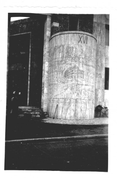 1940 i bassorilievi in travertino nella Casa del Popolo.