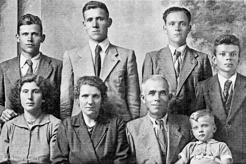 Questa famiglia contadina, originaria della zona di Monte San Savino - Lucignano, si trasferì nel conune di Asciano nel 1940 e i componenti ancora in vita sono oggi distribuiti fra Asciano e Rapolano. La loro attività come mezzadri ha interessato diversi fondi agricoli: Cascaritto, Abbadia Rofeno, Carpineto e Fonteluco a Serre di Rapolano.