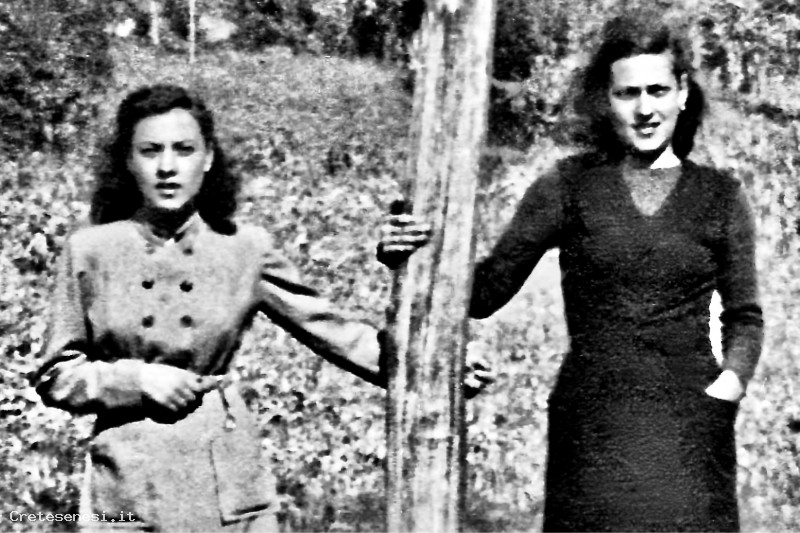 Due amiche in campagna , accanto a uno stollo per pagliai: