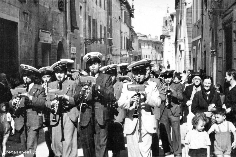 Ci sembra di riconoscere qualche musicante, tipo un giovanissimo Enzo Pianigiani detto Migliaccino, ma non ne siamo certi.