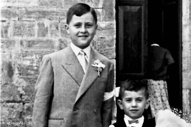 Accanto a Franco, il cuginetto Massimo Pagliantini con i fiori in mano.