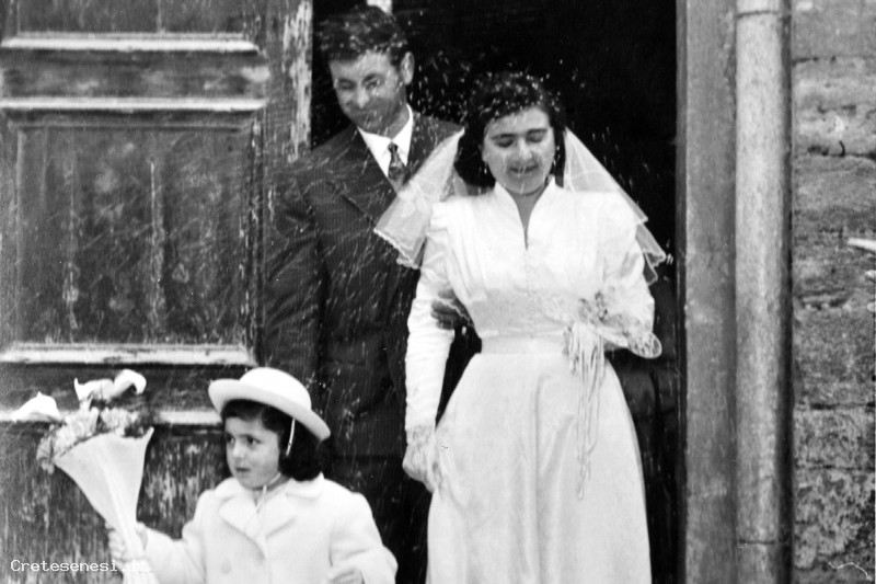 1955, Sabato 12 Febbraio - Gli sposi escono da San Bernardino Asciano