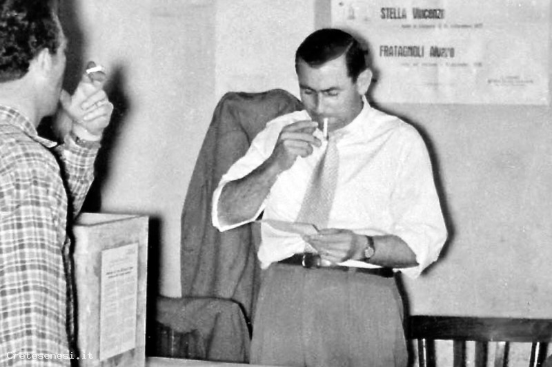 In base al manifesto affisso sul muro dietro, si scopre chi erano gli allora candidati a un seggio provinciale per il comprensorio Asciano-Rapolano: