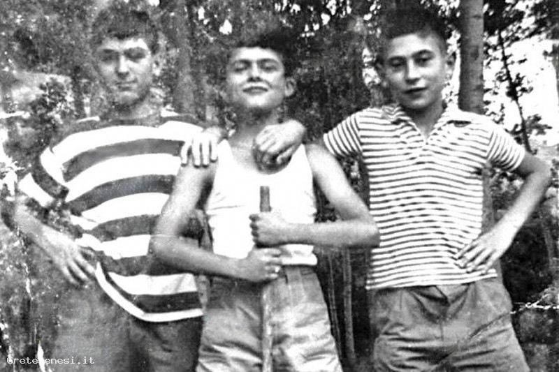 Tre ragazzotti allegri e pieni di speranze per il futuro. Da sinistra: Marcello Centrone, nipote di Adriana del Golo Giorgio Equatori, figlio di Angiolino barbiere Silvano Gotti, anche lui nato e cresciuto in piazza del Grano