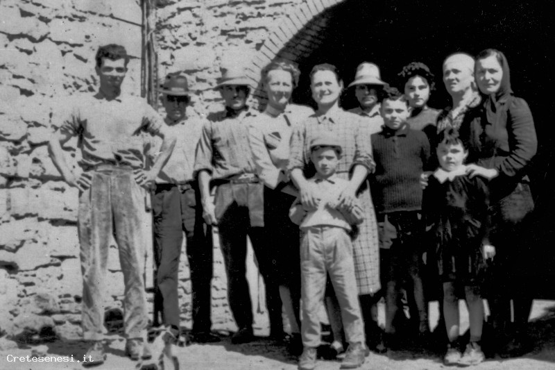 Questa foto di gruppo dovrebbe riguardare la famiglia Dragoni abitante al podere Chiassale, subito fuori l'abitato di Rapolano. Non conosciamo i loro nomi, salvo il bambino al centro, che dovrebbe essere Adriano il titolare della Inox Service del Sentino.