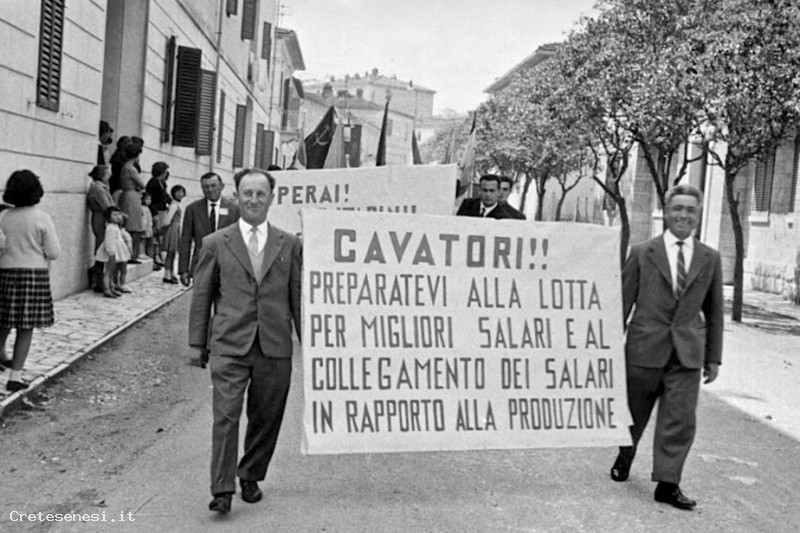 1961 - Il corteo del 1° Maggio sfila in Prato Asciano