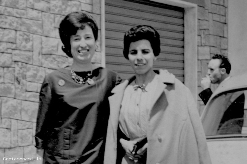 Bruna Marignani e Concettina Migliore splendidamente vestite, davanti alla casa dei Fiorini dietro la chiesa di Sant'Agata.