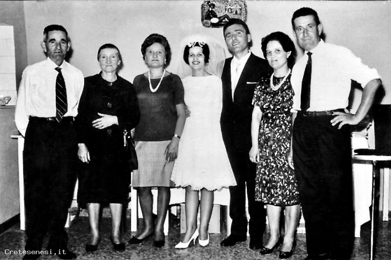 Alla loro sinistra i genitori e la sorella di Sergio, lo sposo.