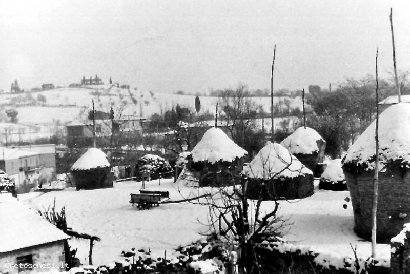 I pagliai in primo piano sono quelli del podere Il Campo, accanto all'ex Convento.