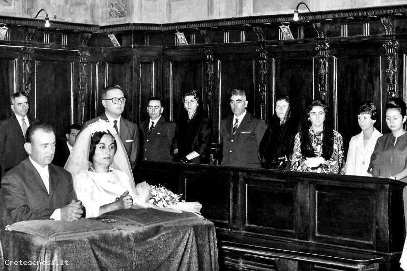 1963, Lunedì 26 Agosto - Gli sposi in chiesa a Monte Oliveto Asciano