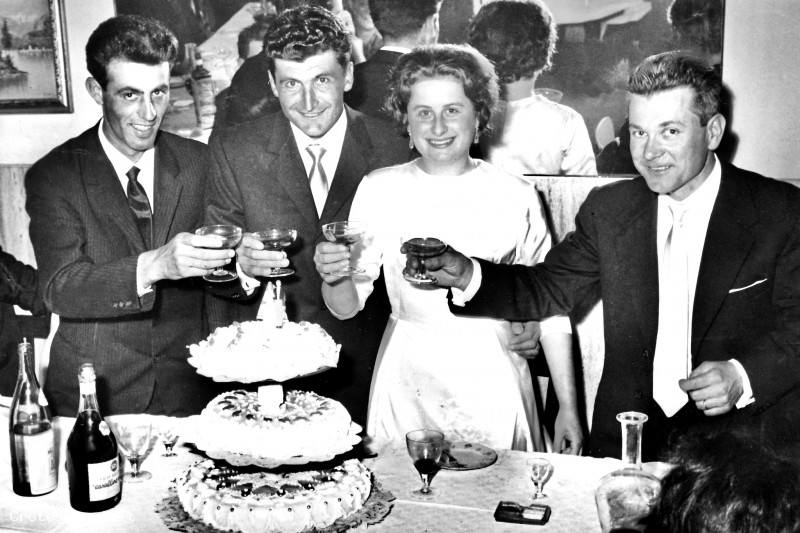 1964, Sabato 11 Aprile - Furio e Rosanna brindano con i testimoni Asciano