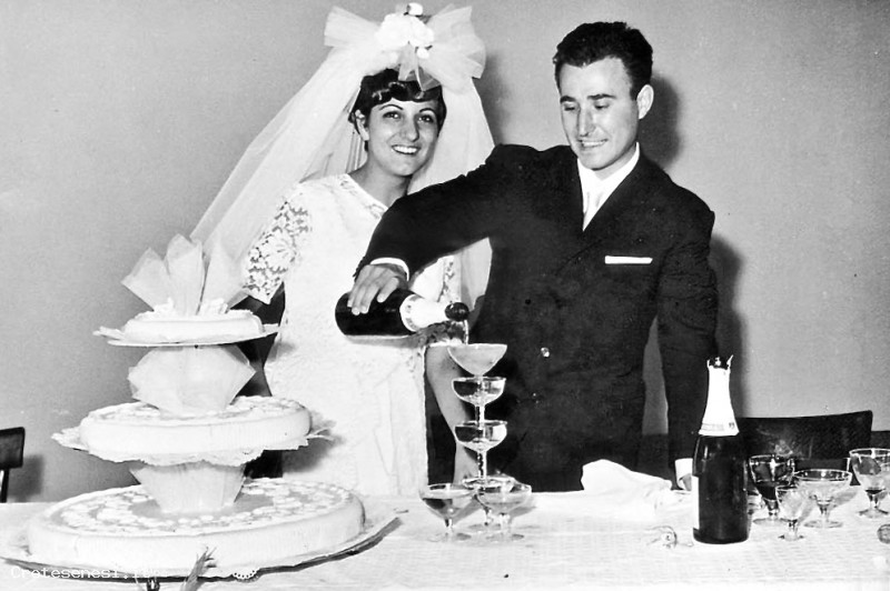1967 ? - Sonia e Sandro dietro la torta nunziale Rapolano Terme