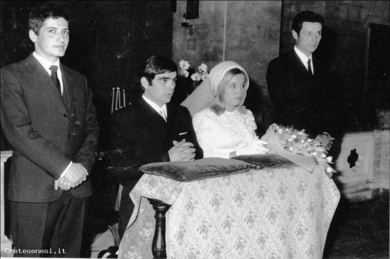Gli sposi: Alfiero Parrini, nato ad Asciano il 21/08/1942 Roberta Moscatelli, nata ad Asciano il 30/01/1946 I testimoni: Roberto Roncucci Silvano Trapassi