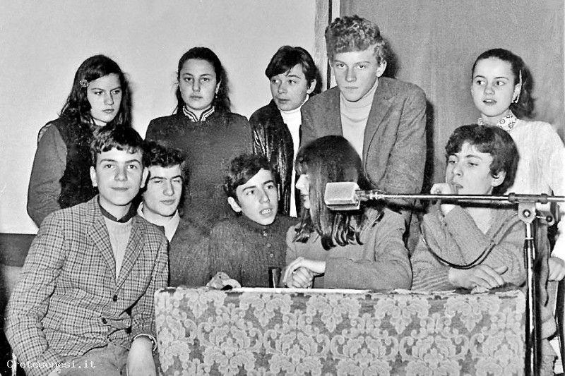 La foto ritrae un momento della competizione fra alunni delle Scuole Medie nel gioco a quiz di moda in quel momento: Rischiatutto. Gioco che emulava l'omonima trasmissione televisiva condotta con successo da Mike Buongiorno.