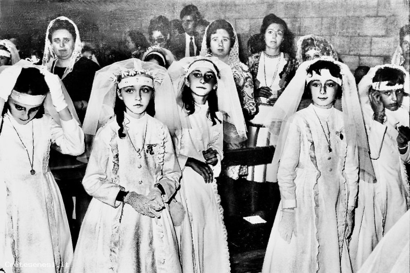 Bel primo piano di alcune cresimande. Si riconoscono: