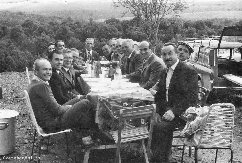 Merenda all'aria aperta dei componenti della Banda di Rapolano, durante una trasferta a San Gusme, in occasione di un evento locale.