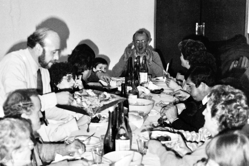 A capo tavola si riconosce Tosco Roncucci e uno dei suoi figli sulla sinistra.