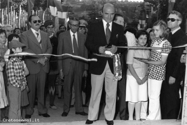 All’inaugurazione, oltre ad una gran quantità di ascianesi, presenziavano le persone più in vista del paese. In questa foto si rileva la presenza del Segretario Comunale, del Direttore della filiale Monte dei Paschi,del locale Maresciallo dei Carabinieri e del presidente della Pro Loco, dott. Giovanni Francini Naldi. Nel ruolo di madrine compaiono inoltre sulla destra, le due sorelle Amidei con il padre alle loro spalle.