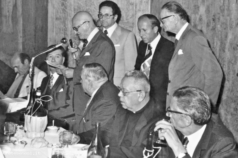 La foto rappresenta visivamente il fenomeno. Oltre al Sindaco e al Presidente Pro Loco, la persona che parla dovrebbe essere il Comm. Renato Sprugnoli, ascianese purosangue che dirigeva l'ufficio movimento della stazione di Siena.