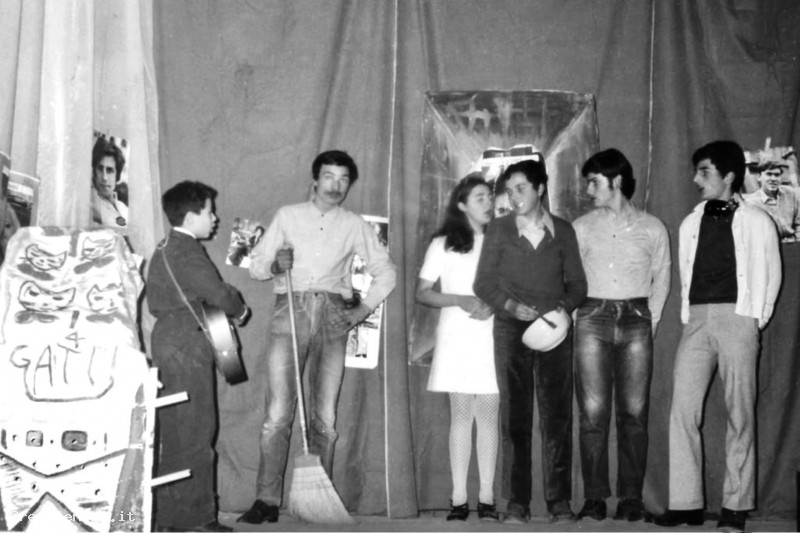 Fra le tante rappresentazioni teatrali organizzate in quegli anni al cinema Parrocchiale, abbiamo rintracciato questa foto relativa, come si legge nella stessa, "I 4 Gatti".