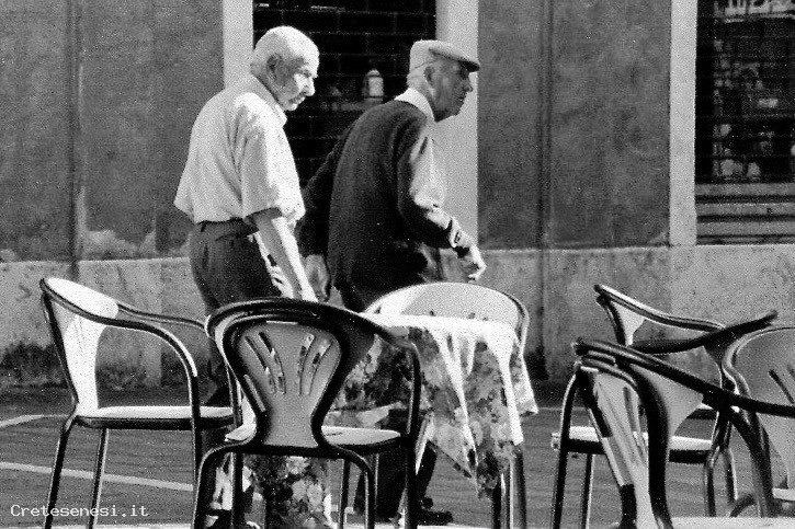 Due vecchi amici avanti con gli anni, in piazza Garibaldi: