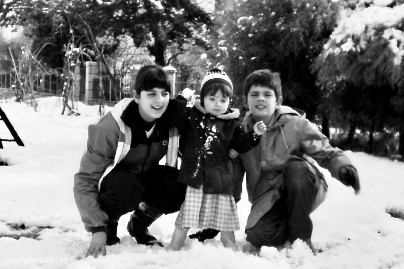 Durante un'abbondante nevicata, caduta a gennaio, i tre fratelli Cresti, figli di Elena e Ilio, sono usciti in strada per giocare con la neve.