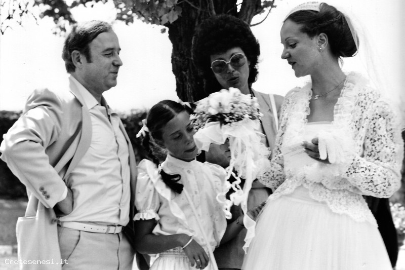 Simonetta, la sposa, mentre parla con lo zio Marcello Palazzi, fratello minore di babbo Ivo e la sua famiglia.