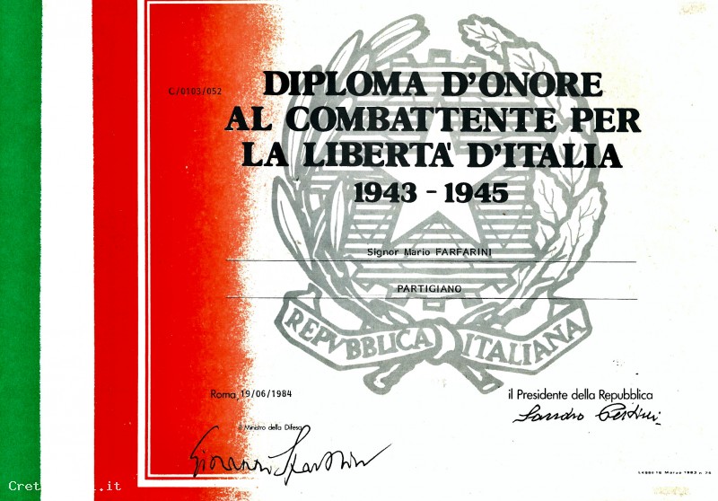 Diplomi di questo genere vennero rilasciati solo a coloro ai quali era stata riconosciuta e documentata una patecipazione attiva all'interno di gruppi partigiani combattenti.