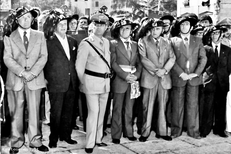 In questa bella foto, oltre al Giulianini, presidente dei Bersaglieri ascianesi, in primo piano sono ritratti: l'allora maresciallo dei carabinieri e il sindaco in carica Antonio Calderini.