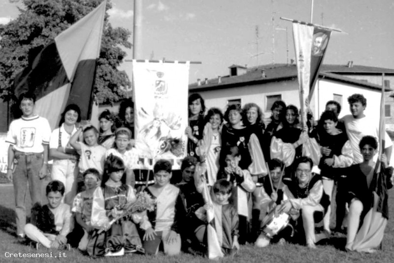 1988 - A Palio vinto, i ragazzi della Contrada festeggiano Asciano
