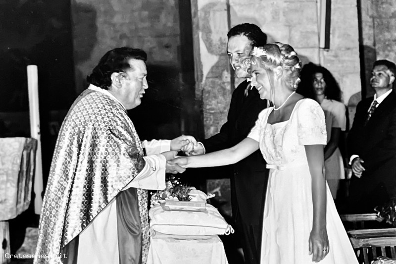 Gli sposi all'altare dialogano con don Silvano Dominici, il celebrante: