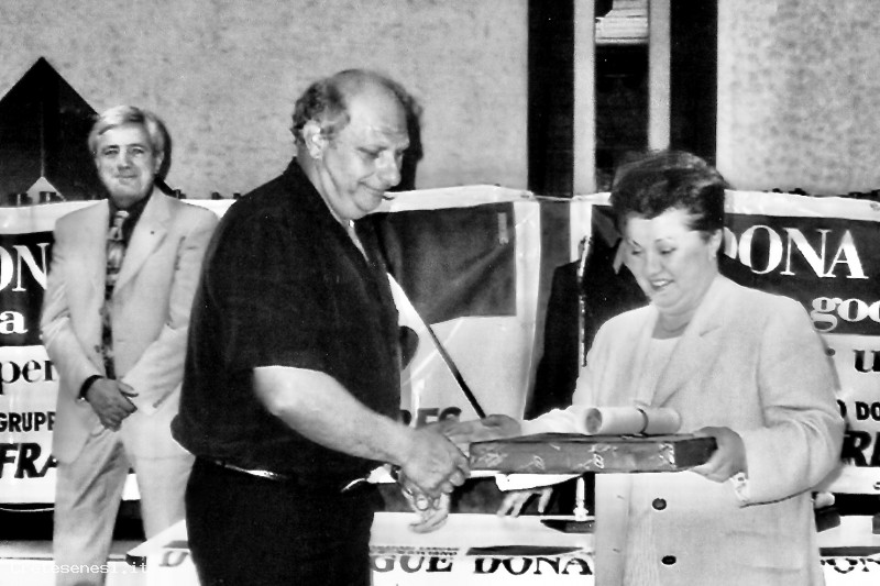 Giancarlo Nucci, detto il Bilia, riceve dalle mani del sindaco Franca Mariotti il premio per le sue numerose donazioni.