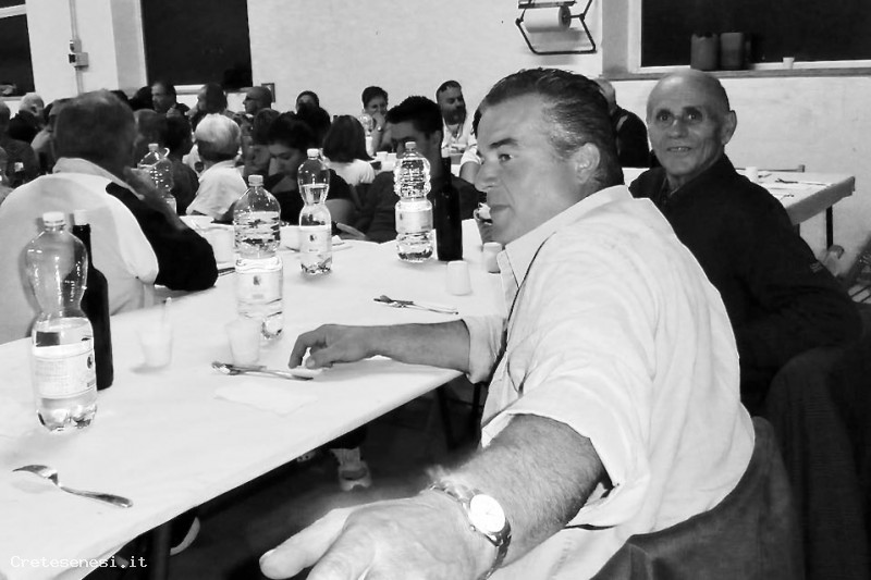 Questa foto ritrae un momento dell'affollata cena svoltasi nel garage della Misericordia.