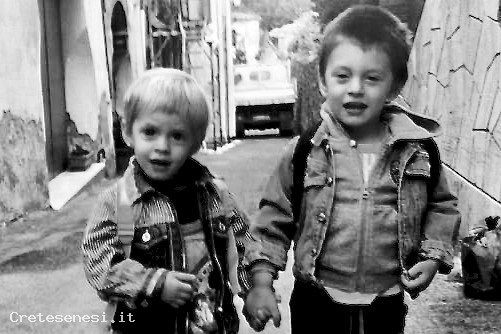 che tenendosi per mano, vanno alla scuola materna vicina a casa loro.