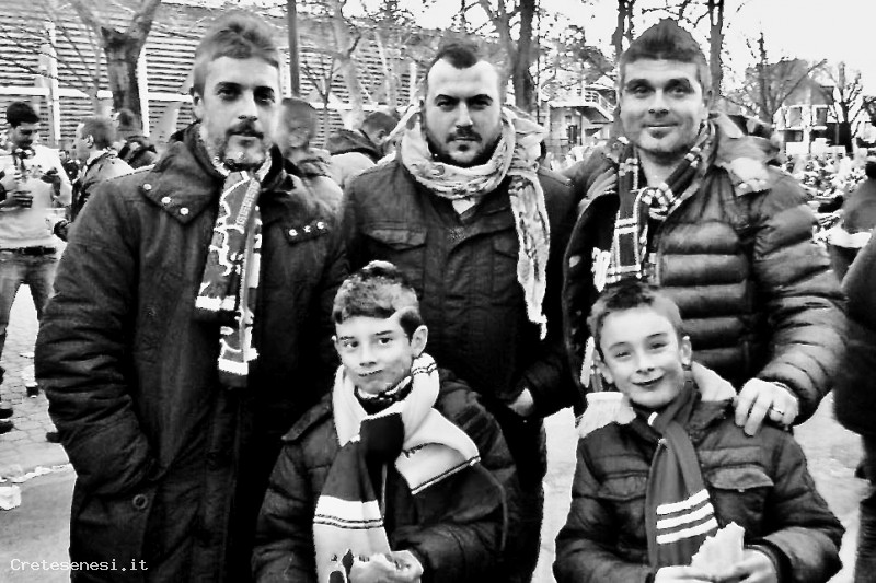 Foto ricordo, fuori dallo stadio Artemio Franchi di Firenze, dei gemelli Parri accompagnati dai rispettivi figli.