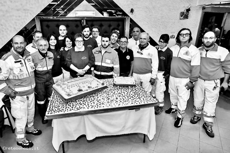 Al termine di una periodica esercitazione del nucleo di Protezione Civile locale, si festeggia con una torta, insieme alla Governatrice della Misericordia.