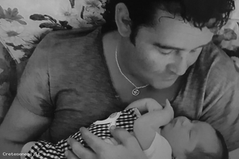 Alberto Ravaglia, neo padre, con il piccolo Federico in braccio.