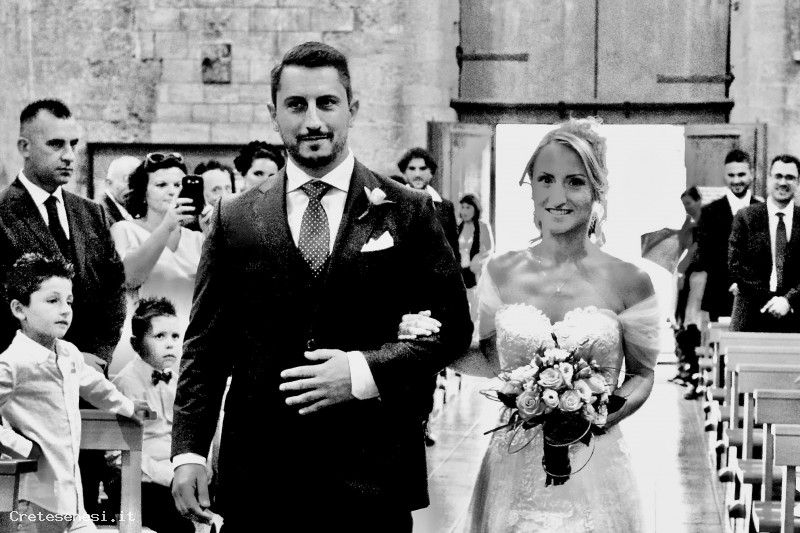 Luca Valori, in qualità di capo famiglia, accompagna la sorella Giulia all'altare in Basilica.