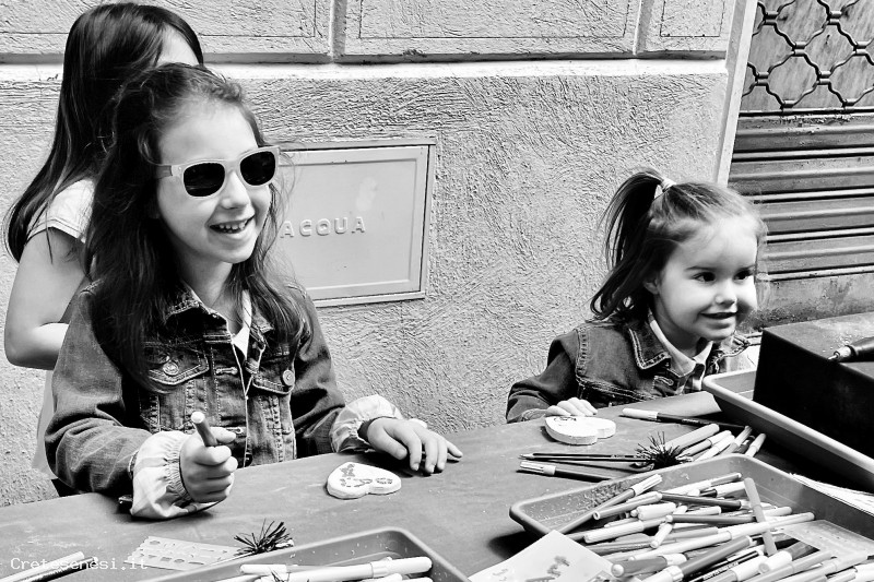 Il laboratorio allestito da Giorgio Boccini per stimolare la vena artistica dei bambini, ospita due sorelle particolarmente vivaci: