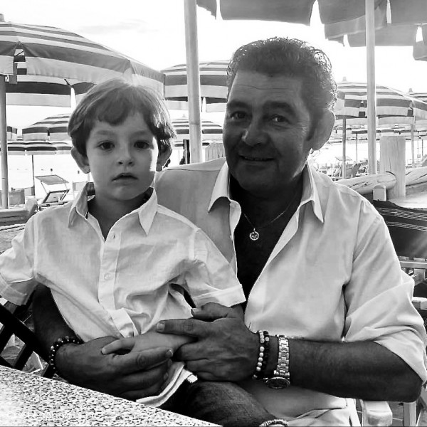 Federico Ravaglia con il babbo Alberto, al mare al Bagno Oasi di Follonica.