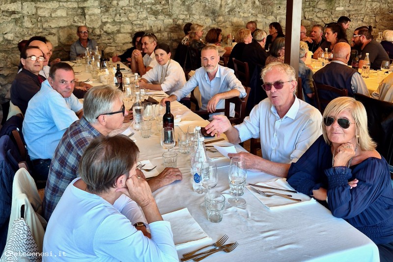 Delle 82 persone suddivise in tre tavolate, in quella di sinistra si riconosce solo Moreno Dogani.