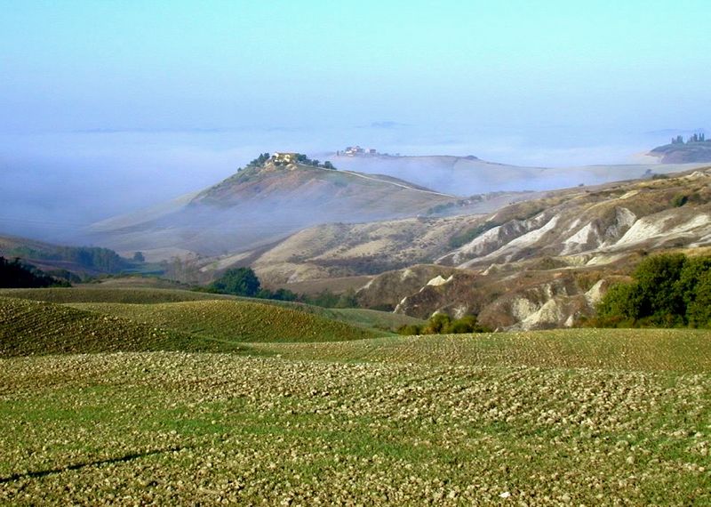 Da qui inizia un percorso che si svolge prevalentemente su una balconata a strapiombo su una bellissima zona connotata da calanchi cretacei sul lato destro. Dopo qualche chilometro, oltre la vecchia fornace dei Poggetti, si gira a sinistra verso Serre.
