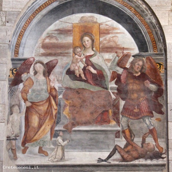 Affresco di Madonna col Bambino e gli Arcangeli Asciano